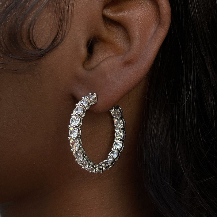 Eternity Hoop Earrings shine from all angles. Features hand-set, prong-lifted stones in a set to complete your fit.