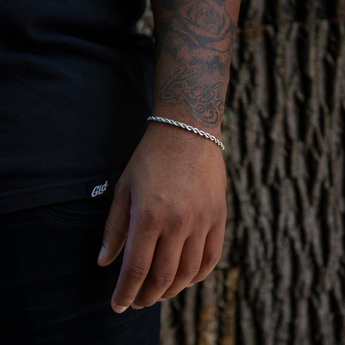 The Rope Bracelet in White Gold- 4mm features a bold yet simple twisted design that can be worn with any fit.