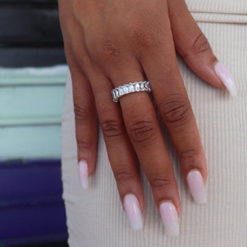 Demand attention in one of GLD's best-selling items, the Baguette ring. This ring is made up of 100% precious metals, made from 925 Silver and covered in 3 microns of 14k white gold. Perfect for stacking with other rings, the Baguette ring offers a unique shine to any look.