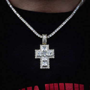 For those looking for a bolder upgrade to our original Baguette Cross pendant, the Center Stone Baguette Cross is flooded in larger hand-set stones.