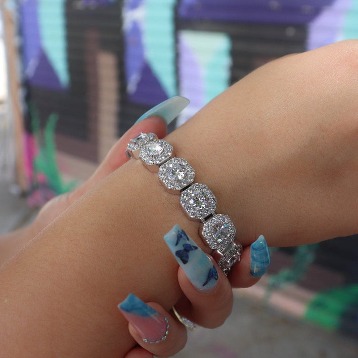Show up and show out in the highly anticipated Clustered Tennis Bracelet in White Gold. Featuring high shine stones paved throughout, this GLD exclusive classic bracelet is THE piece you've always needed in your jewelry collection. Perfect for dinner or a night out, this bracelet is best paired with a stacked tennis bracelet or a white gold watch to show off your individual style.