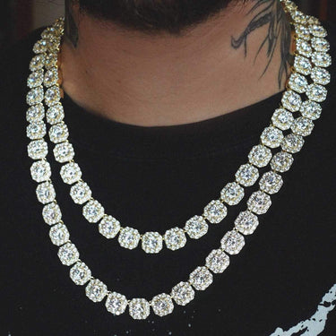 For the immaculate drip, a bold update on our classic Tennis Necklace now in yellow gold!