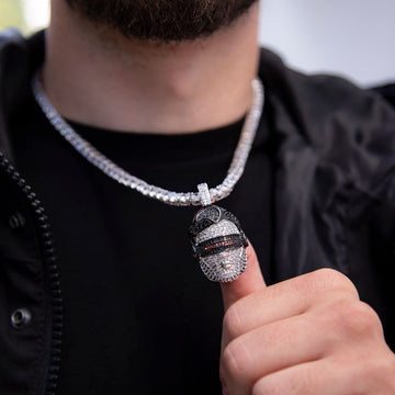 Introducing the Official pendants of the MARVEL X-Men Collection. This iconic piece is fit for a true Hero. Flooded in hand-set white, red, and black round cut stones, finished in 18k White Gold Plating and Black Rhodium, this pendant is crafted with all details in mind.