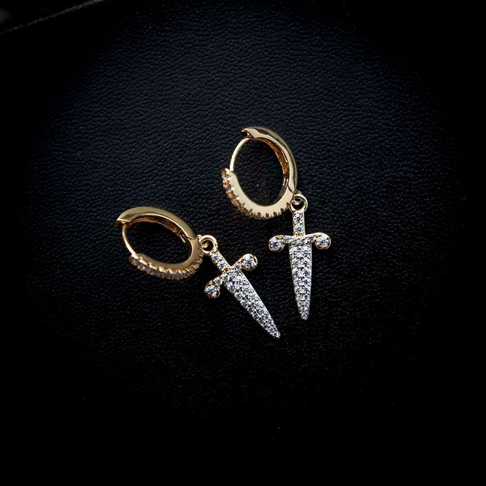 Dagger Hoop Earrings are now available with CZ stones or any diamond of your choice. Wear them individually or pair them in a set to complete your fit.