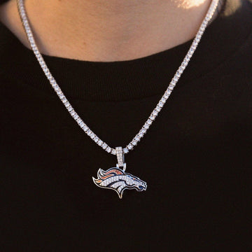 GLD has teamed up with the National Football League to introduce the official NFL Team Pendants. This piece was meticulously crafted with a cluster of multi-color hand-set stones, as well as blue and orange enamel to accurately depict the logo of the Broncos. Flex this NFL season with the official pendant of the Denver Broncos!