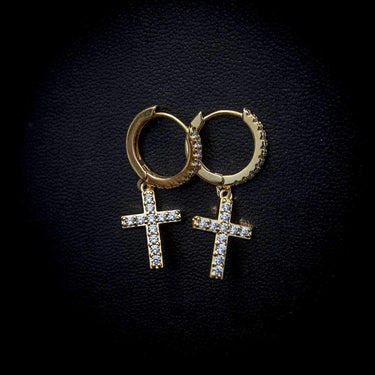 Diamond Cross Hoop Earrings in Yellow Gold