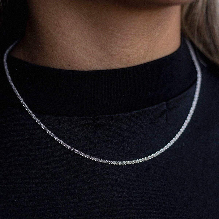 The Popcorn Link Chain is delicate and unique and the perfect piece to compliment any fit. Wear it alone or pair it with one of our bestselling micro pendants. Finished in 14k White Gold, this adjustable piece hangs from 16" - 18" in length.
