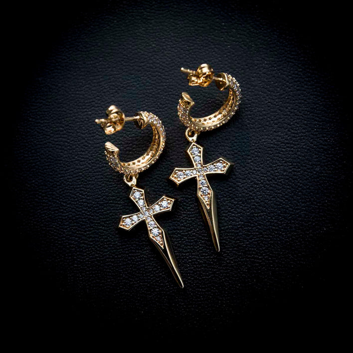 Dagger Cross Hoop Earrings are now available with CZ stones or any diamond of your choice. Wear them individually or pair them in a set to complete your fit.