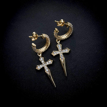 Dagger Cross Hoop Earrings are now available with CZ stones or any diamond of your choice. Wear them individually or pair them in a set to complete your fit.