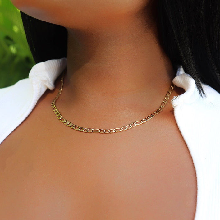 Introducing the Figaro Link Necklace - 4mm. A classic look sure to complete any fit. You know you'll stand out when you're rockin' this piece.