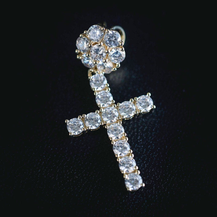 GLD's Diamond Studded Cross Pendant, a modern twist on our classic diamond cross to add a little extra shine to any occasion. The shine on these stones is intense - your friends will want it bad.