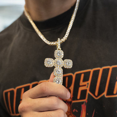 GLD's "Gem Stone Cross" is flooded with huge flawless lab stones, intricately hand-placed to give the pendant an unparalleled shine.