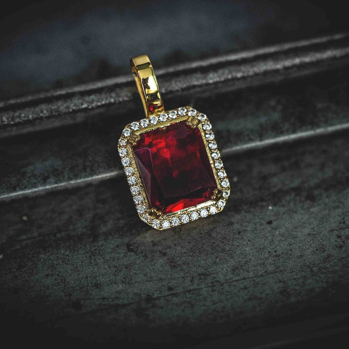 Due to popular demand, our best selling Iced Rock pendant is now available in red!
