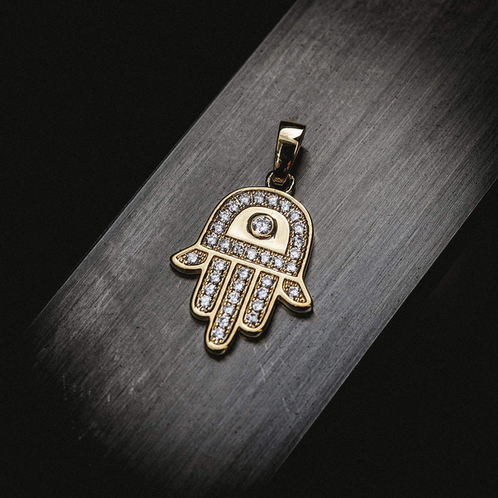 A protective symbol said to bring its owner happiness, luck, health and good fortune, the "Hamsah Necklace Charm" is detailed with CZ Stones for an unparalleled shine.