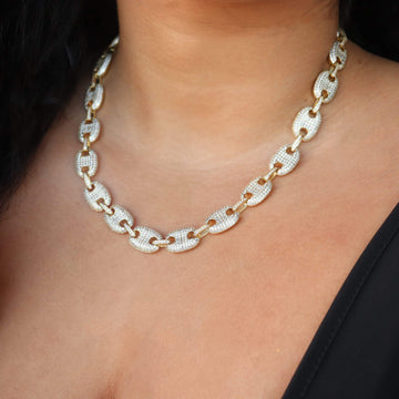 We've added some ice to our most demanded Gucci Link Necklace, along with larger (12mm) links. It's your time to boss up with this bold new look.