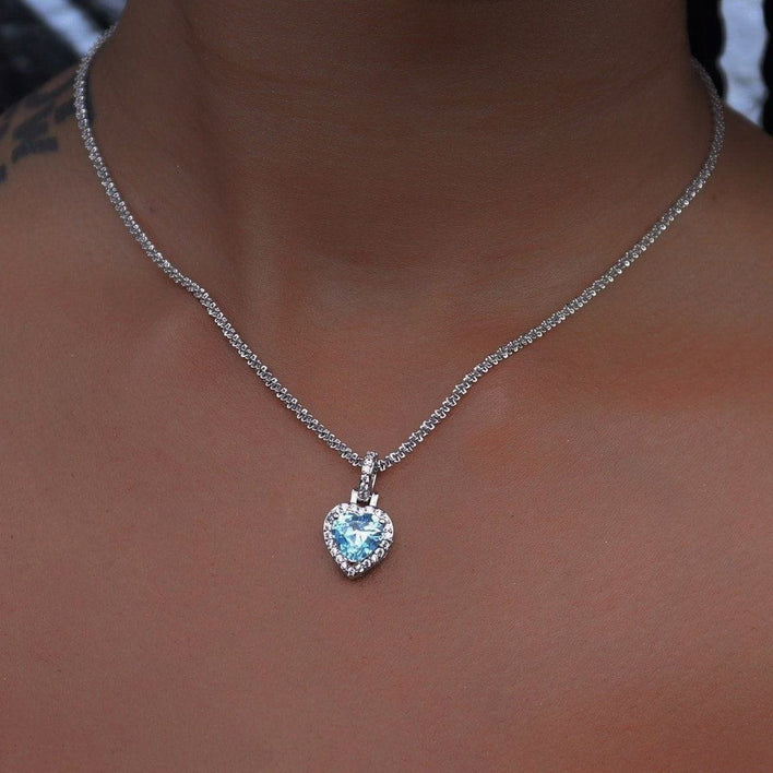 The "Iced Heart" pendant features a large CZ heart shaped stone surrounded smaller round cut stones, ensuring an unparalleled shine from all angles.