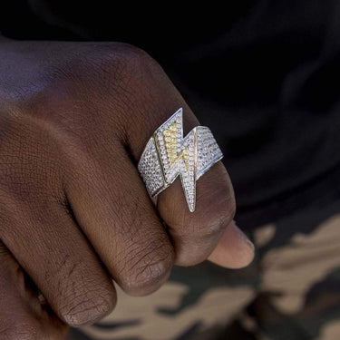 The Exclusive Iced Lightning Ring is the first of its kind. Flooded in clear and yellow stones, this multi-layered piece shines from all angles with a reflective 3D effect. This ring is made up of 100% precious metals made from 925 Silver covered in 3 microns of 14k White Gold.