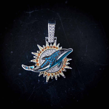 GLD has teamed up with the National Football League to introduce the official NFL Team Pendants. This piece was meticulously crafted with a cluster of multi-color hand-set stones to accurately depict the logo of the Dolphins. Flex this NFL season with the official pendant of the Miami Dolphins.