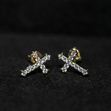 An iced-out take on the classic cross, GLD's Micro Cross Stud Earrings are sure to shine. The perfect addition to any fit while still shining to impress.