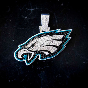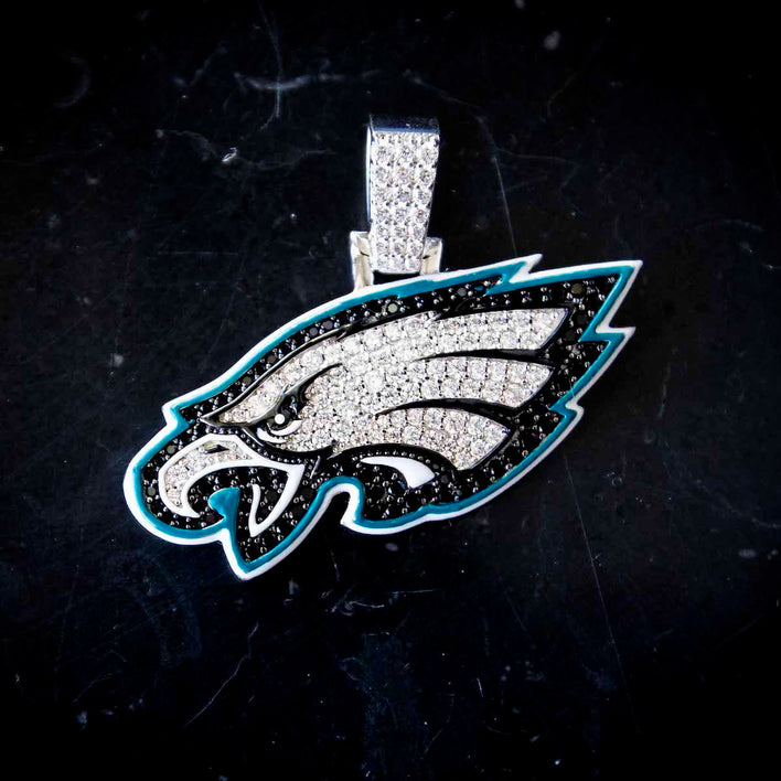 GLD has teamed up with the National Football League to introduce the official NFL Team Pendants. This piece was meticulously crafted with a mixture of clear and black hand-set stones to accurately depict the logo of the Philadelphia Eagles. Boss up and rep your squad with the official pendant of the Philadelphia!