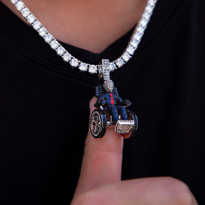 Introducing the Official pendants of the MARVEL X-Men Collection. This iconic piece is fit for a true Hero. Flooded in hand-set white, blue, and black round cut stones, finished in 18k White Gold Plating and Black Rhodium, this pendant is crafted with all details in mind.